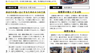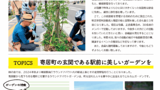 第2号(2024.12) 寄居駅南口ラウンドアバウト内の植栽工事が終了し、万葉集にも歌われている「秋の七草」など在来種を取り入れた宿根草ガーデンが誕生しました 。水はけの良い土にするための土壌改良に4つの工夫を凝らし、冬の寒さを乗り越えた後の春先の芽吹きが期待されます 。街路樹管理活動に加え、新たに植栽されたガーデンとともに、「寄居の里山や自然とつながる景色」を描き、魅力的な町の景観づくりを進めています 。 2025.10.23